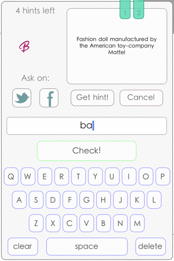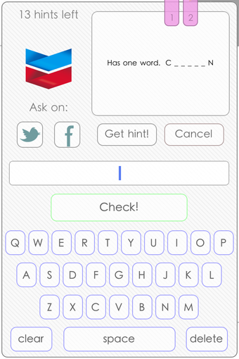 Pour chaque enseigne, vous devez écrire en toutes lettres le nom de la marque correspondante. Plus vous répondez rapidement, plus vous accumulez des points et des indices qui vous seront très utiles par la suite.Il est aussi possible de solliciter l'aide de vos amis en passant par Twitter ou Facebook.